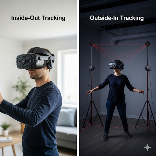 Ein weiterer wichtiger Punkt sind die Sensoren, die dafür sorgen, dass die Recheneinheit weiß, wie und wo man sich im Raum befindet. Auch hier gab es in den letzten Jahren einen klaren Technikwechsel, auch hier mit Ausnahme der HTC Vive und einiger weniger anderer Headsets. HTC bietet allerdings beide Techniken an, hat aber natürlich eine große installierte Basis an Outside-In-Tracking Virtual Reality Systemen.